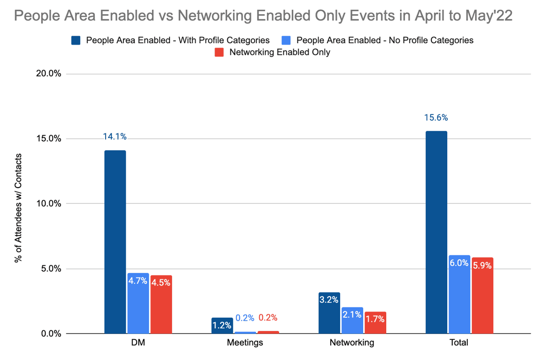 lift in key connection activities: DMs sent, 1:1 meetings scheduled, and profile connections made.